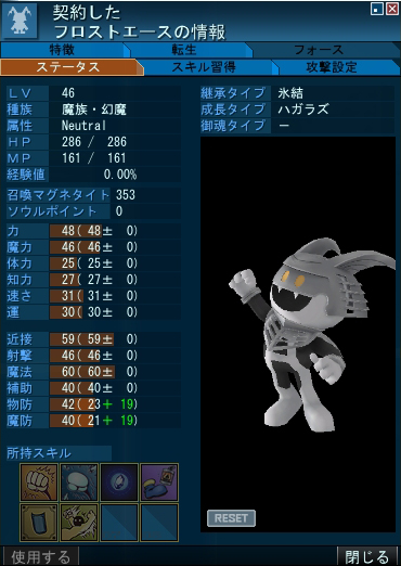 仲魔のステータス(※PCも同じサイズ)