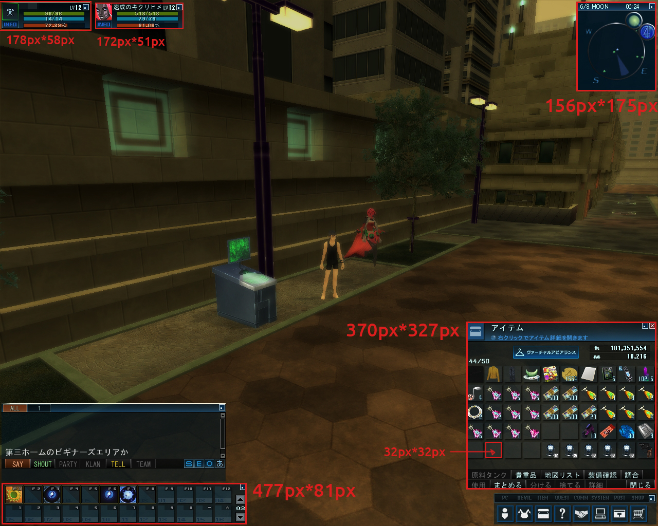 アイテム(アイテムを右クリックした時のサイズ)