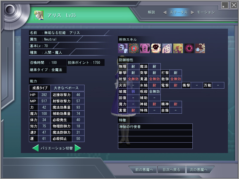 残念ながらどの悪魔も悪魔全書に登録できない亜種らしい